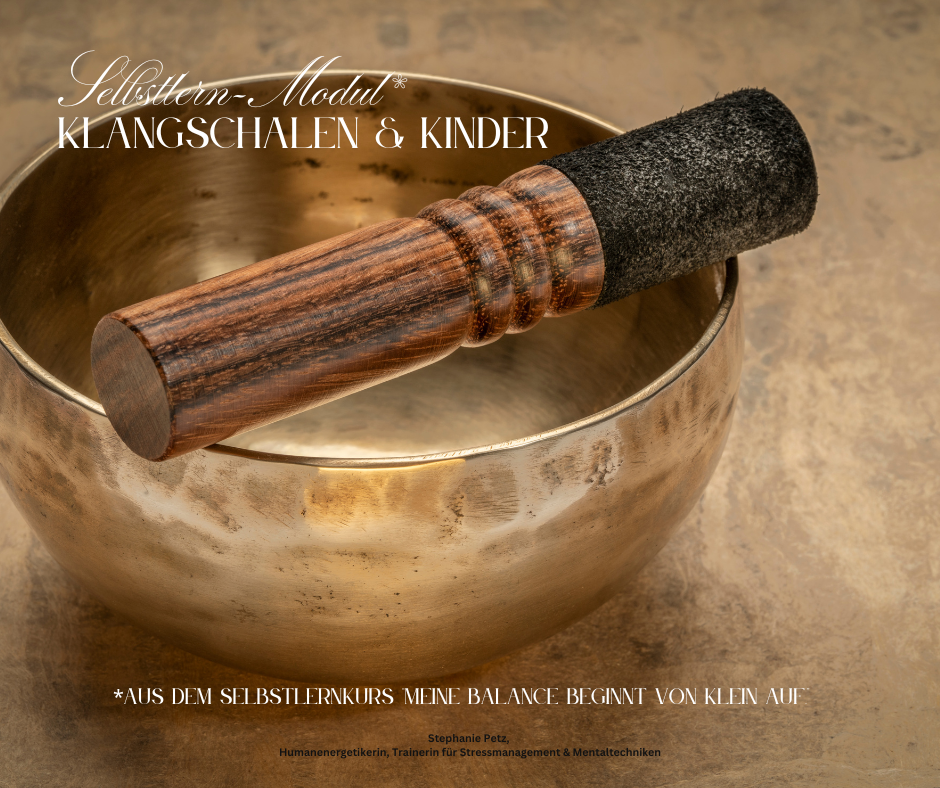 Modul “Klangschalen & Kinder” – aus dem Selbstlernkurs “Meine Balance beginnt von klein auf.” In diesem Modul geht es um die Anwendung von Klangschalen zur Emotionsregulation, Entspannung, innere Ruhe und Achtsamkeit. Dieses Minimodul lässt euren Familienalltag klingend werden. Ab Geburt eigentlich interessant. Wenn du eine Teilnahmebestätigung wünscht, ist dafür eine Lernaufgabe abzugeben (Reflexionen, Fragenbeantwortung) abzugeben. Du alleine entscheidest, was du von den Wissen mitnimmst und anwenden wirst. Es handelt sich um Wissensvermittlung.